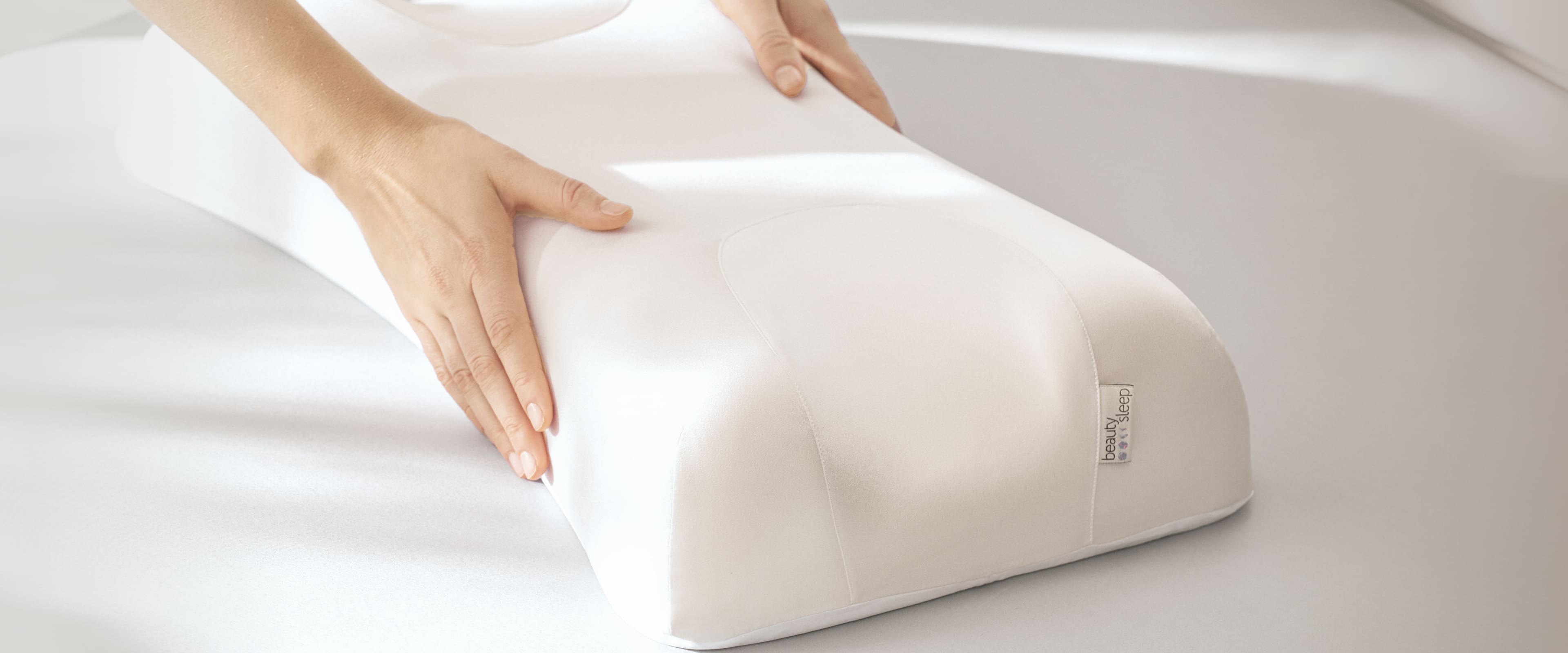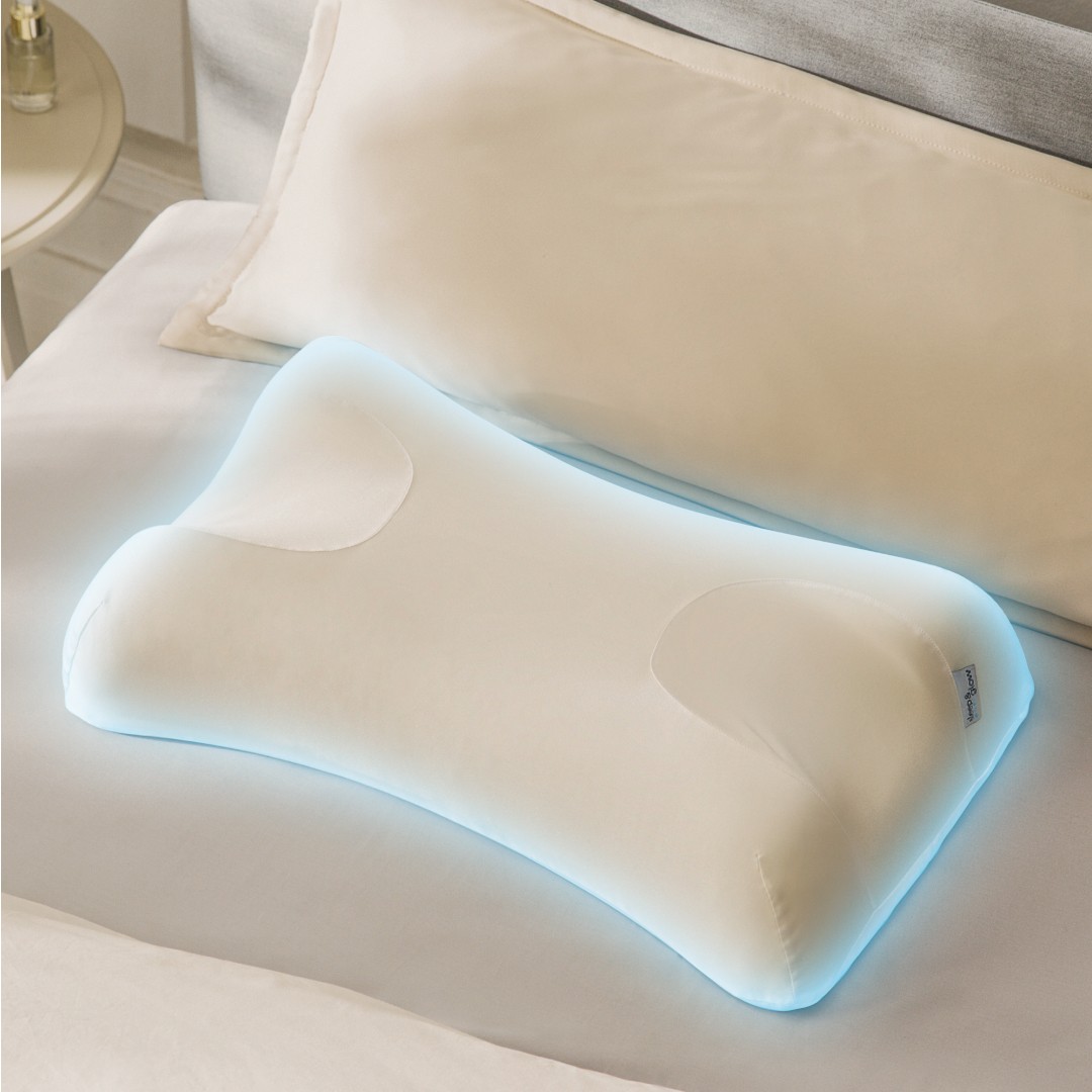 Gracias a su diseño especial, la almohada Sleep&Glow proporciona comodidad a la vez que reduce el contacto entre el rostro y la almohada, previniendo y combatiendo las arrugas del sueño y las bolsas matutinas.